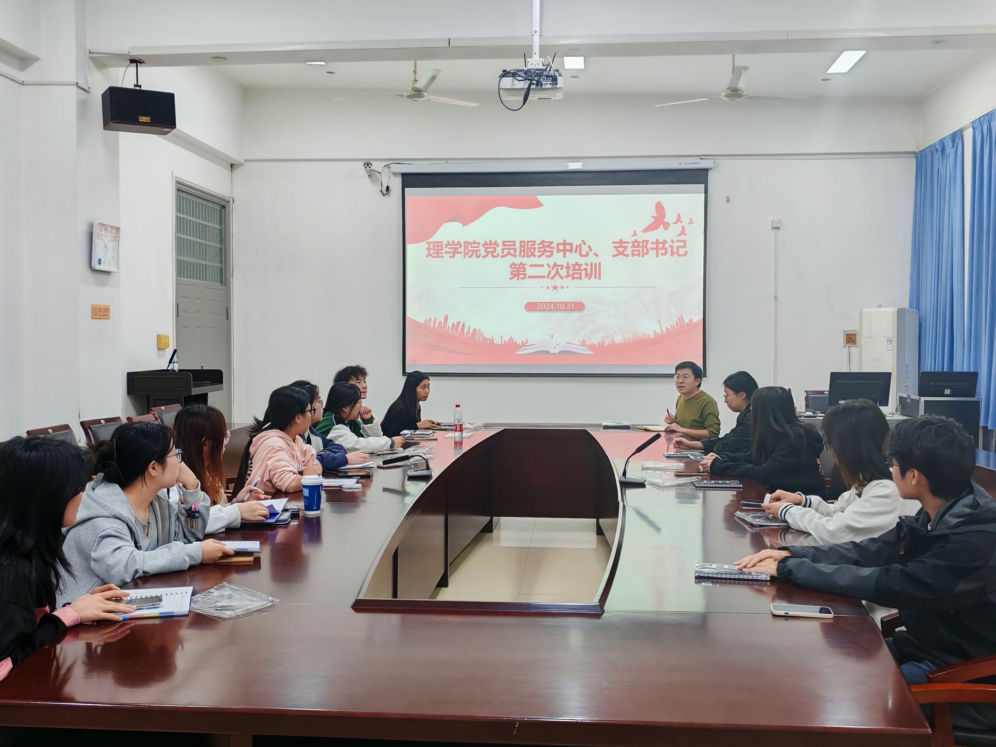 (通讯员金雨欣)为深入学习贯彻习近平新时代中国特色社会主义思想,认真贯彻落实党的二十届三中全会精神,提高学院党支部书记政治素养和党建业务能力,并进一步规范理学院党员发展培训工作,10月31日下午,我院于22614召开党员服务中心、支部书记第二次培训会议。理学院党委秘书杨德明、党员服务中心主任余鑫瑶、各部门部长、党支部书记参加了本次会议。