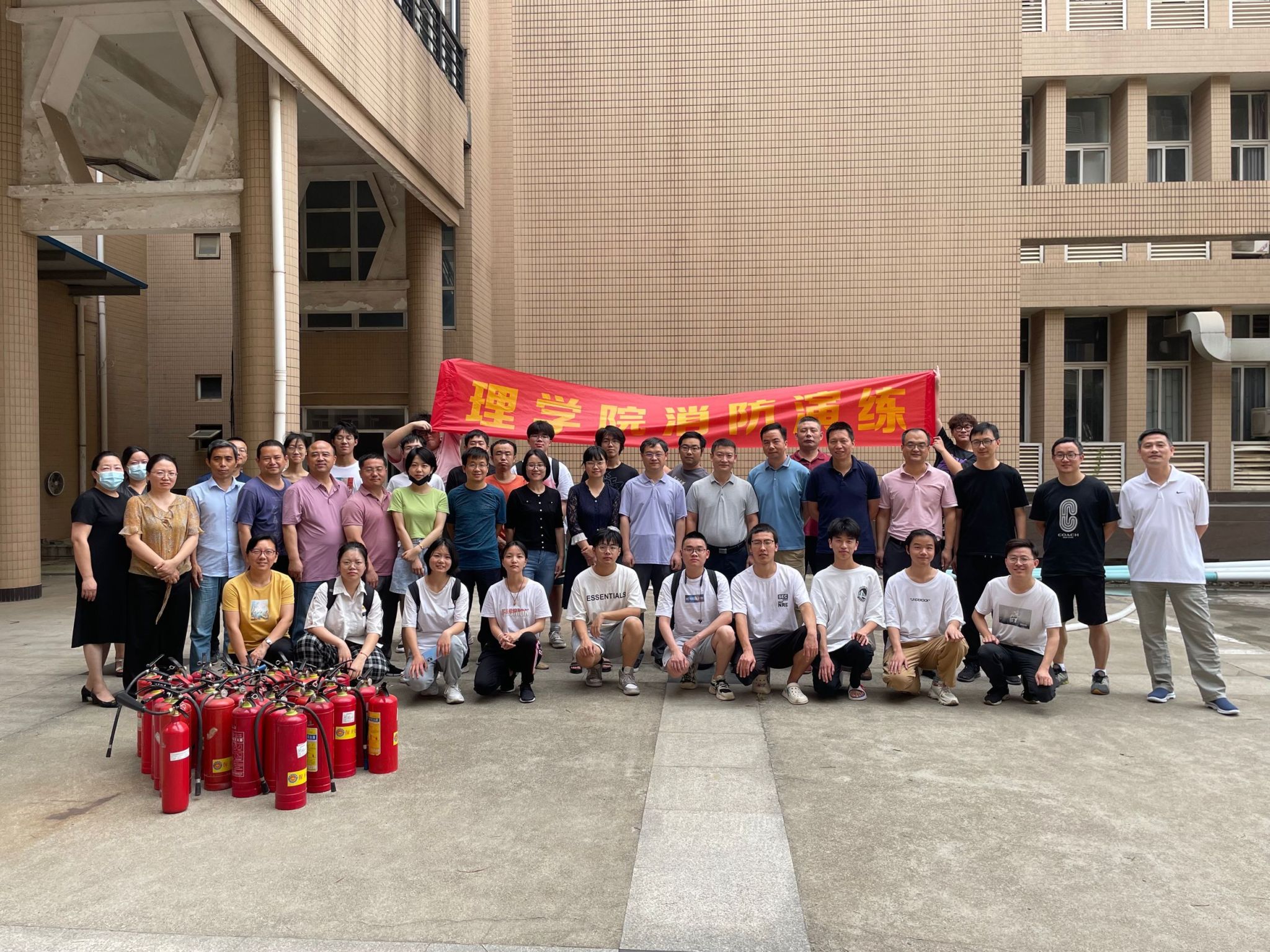 (通讯员施洁)为响应我校“校园安全检查月”和“安全生产月”的号召,提高我院师生的消防安全意识,增强火灾应对能力,6月15日,我校保卫处消防科科长段晓栋在我院楼下空旷地带为我院师生进行了消防科普及灭火器实操培训,我院党委书记刘泽喜、院长丁义明及其他师生代表一起参加了此次消防演练。