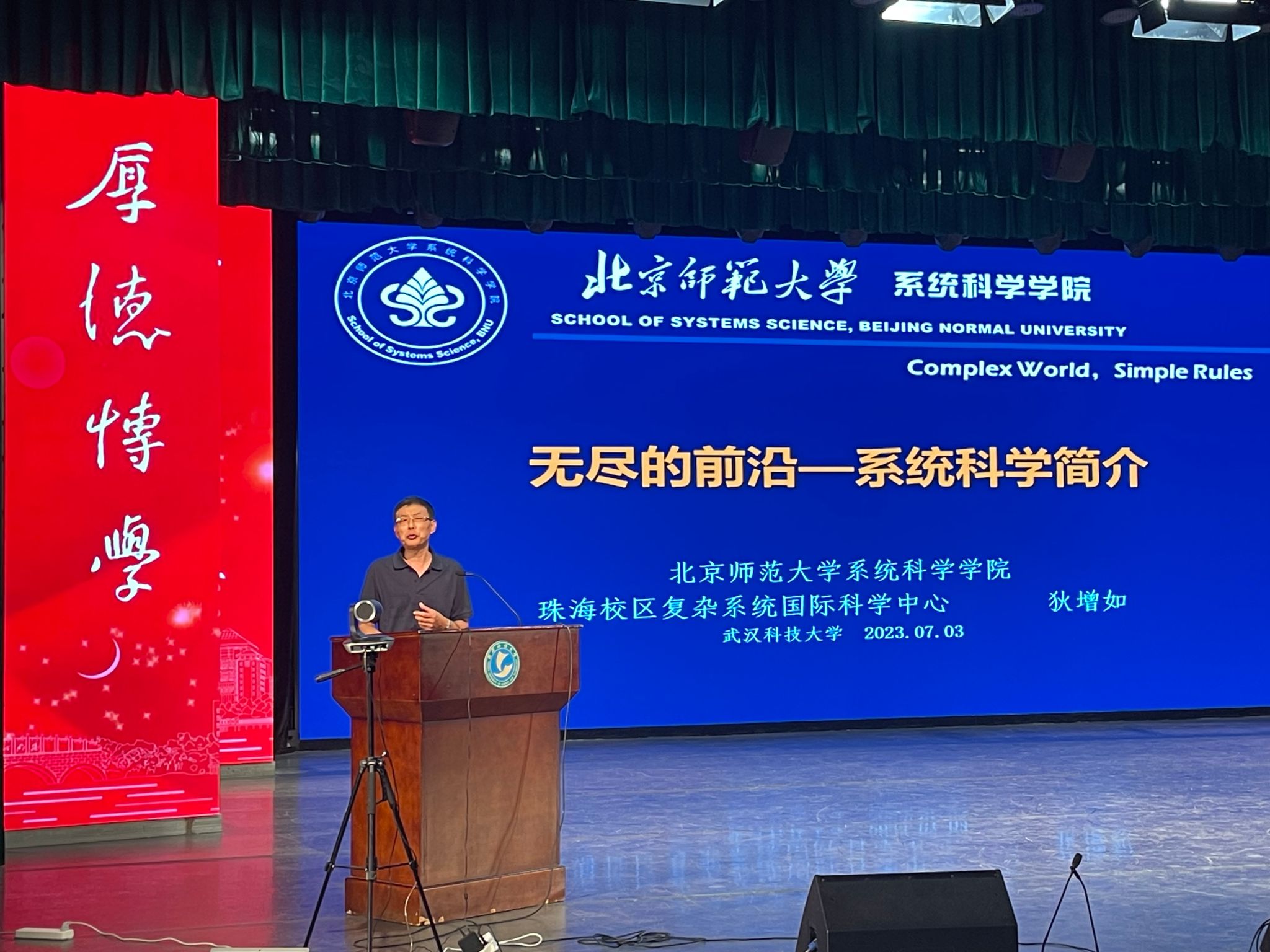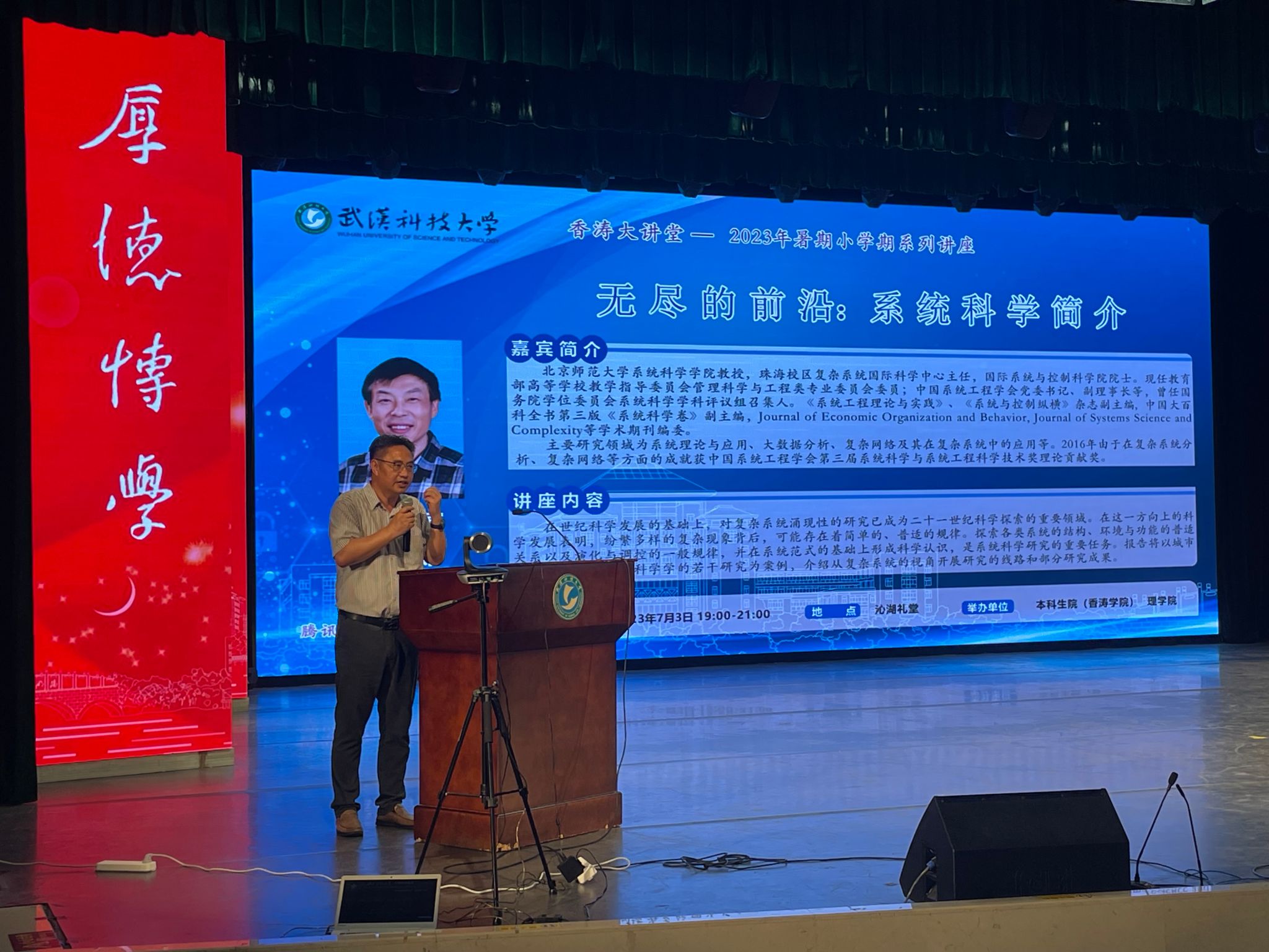 (通讯员苏青青 申杨)7月3日晚19:00,北京师范大学狄增如教授受理学院邀请在沁湖礼堂为我校师生作学术报告,题目为“无尽的前沿:系统科学简介”。理学院领导及师生代表、香涛学院全体师生出席讲座。讲座由本科生院副院长、香涛学院院长(兼)张志清教授主持。
