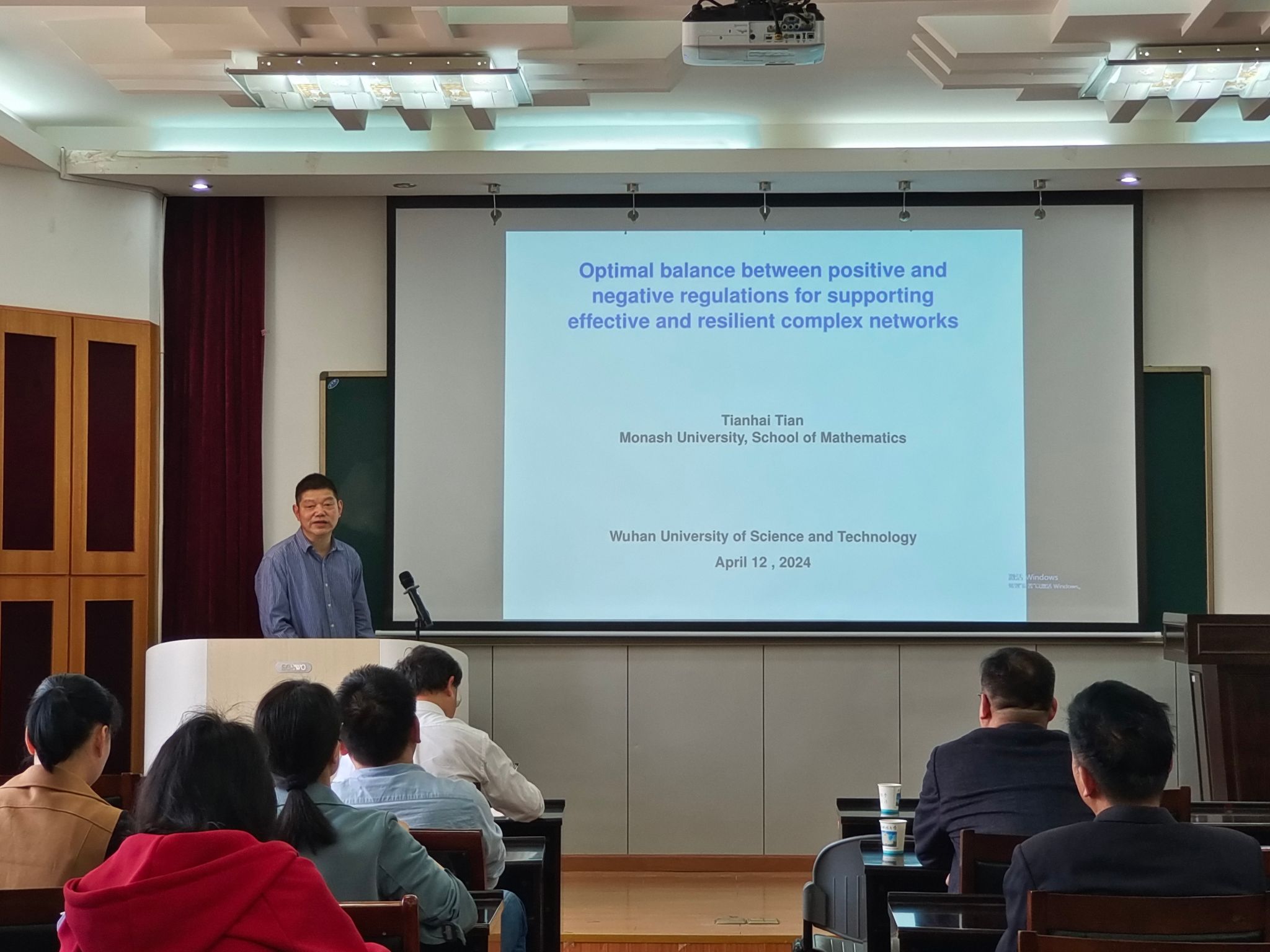 (通讯员苏青青)4月12日,澳大利亚莫那什大学田天海教授应我院邀请在理学院报告厅作学术报告,题目为“Resilience of large-scale interacting networks with positive and negative regulations”。本次报告会由我院院长丁义明教授主持,理学院教师及学生代表参加了此次报告会。