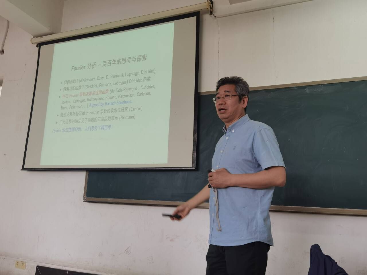 (通讯员苏慧君)4月12日,我校理学院特邀法国Picardie大学特级教授、武汉大学特聘教授范爱华在22201作题为“傅立叶与傅立叶分析——科学的唯一目的是人类精神之荣耀?”的科普讲座。本次讲座由我院院长丁义明主持,理学院部分教师、研究生及本科生参加了本次讲座。