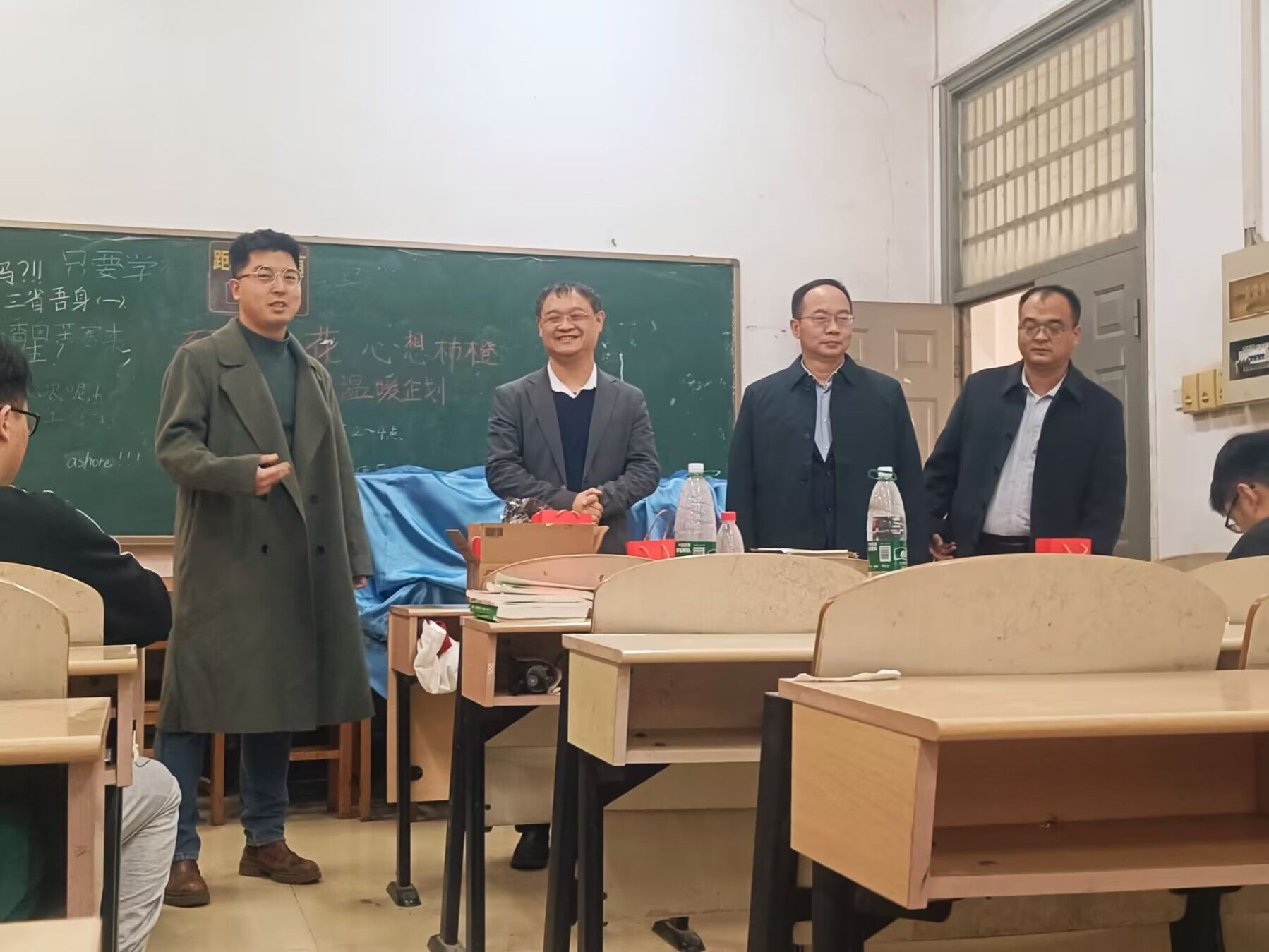 武科大网讯(通讯员林小桐 张迪)为缓解2021级学生考研和考公的压力,并坚定学生信念和信心,11月22日,我院于教22300考研自习室开展了“心想柿橙”冬日温暖企划活动。我院党委书记王文涛、院长丁义明、副院长张传洲以及2021级辅导员毕浩洋出席为学生们送温暖。