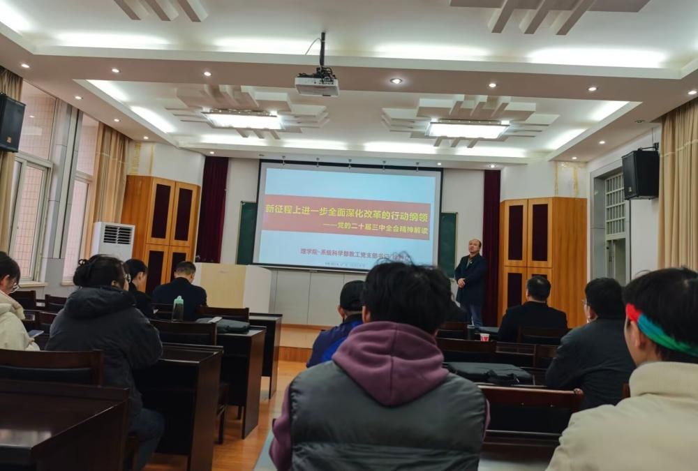 武科大网讯(通讯员金雨欣)为推动我院干部师生全面学习、全面把握、全面落实党的二十届三中全会精神,坚定不移把党的二十届三中全会提出的目标任务落到实处,我院于12月12日下午于22515开展《新征程上进一步全面深化改革的行动纲领》主题宣讲。本次宣讲人为学校“双带头人”宣讲队成员、我院系统科学部党支部书记徐树立,学院50多名师生党员参加了此次活动。