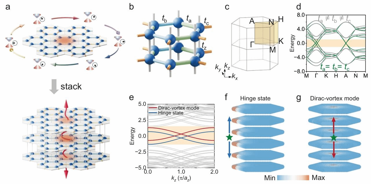 图1 三维 Kekulé 畸变蜂窝晶格中的拓扑狄拉克涡旋模式