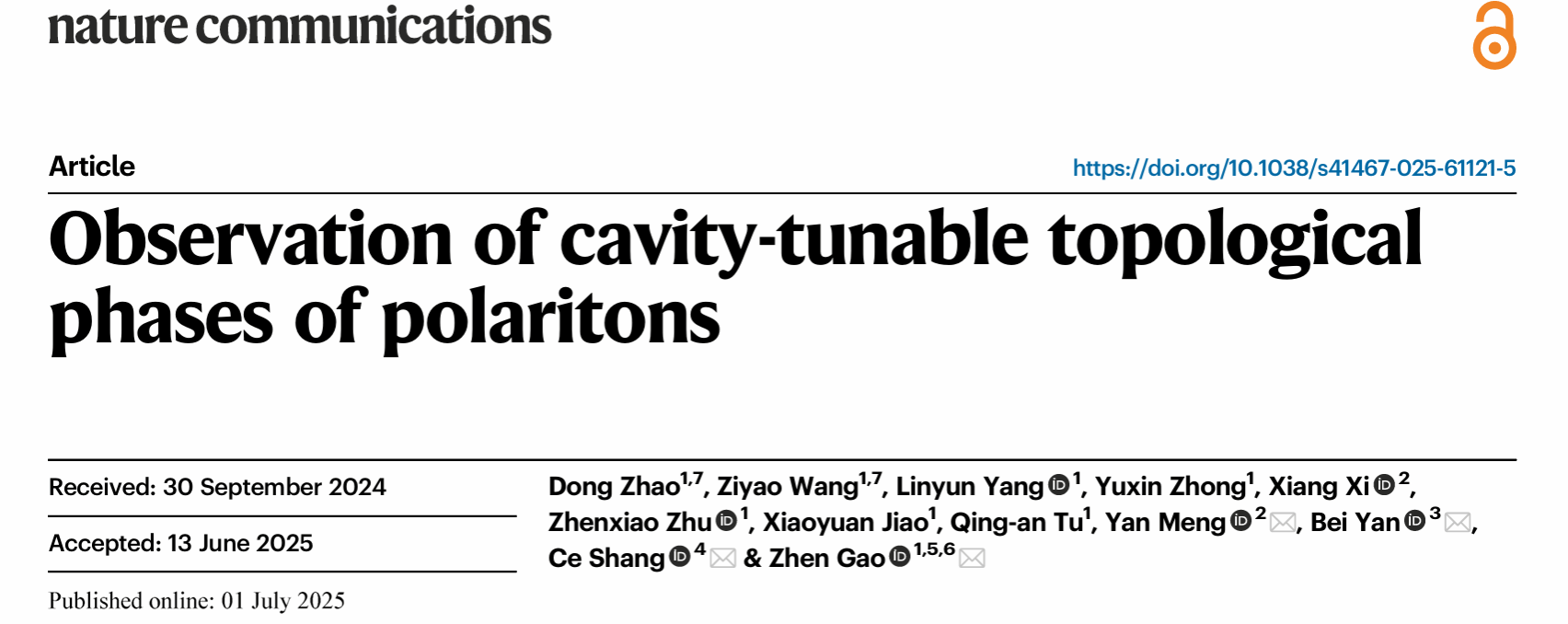 7月,我校理学院青年教师颜贝与南方科技大学、东莞理工学院、中国科学院空天信息创新研究院等单位合作,首次在实验中实现了极化激元拓扑相的腔调控,突破了传统拓扑系统必须依赖晶格结构改变才能调控拓扑性质的限制。相关成果以“Observation of cavity-tunable topological phases of polaritons”为题发表在国际知名期刊《Nature Communications》上发表。我校理学院青年教师颜贝为论文共同通讯作者,武汉科技大学为本研究第三完成单位。