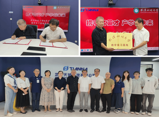 随后,丁义明院长与韩建涛董事长代表双方签订《实习基地合作协议》,丁院长向企业授予“武汉科技大学教学实习基地”牌匾,标志基地正式落地。仪式后,双方交流实习方案与科研合作,全体合影留念。韩建涛董事长热情欢迎学生代表,亲自带领参观生产车间与研发基地,并认真细致解答学生关于实习、职业发展的疑问,同时向应届毕业生发出邀请,期待其加入企业共成长。学生代表表示,此次活动让自己对产业与职业规划有了更清晰认识。