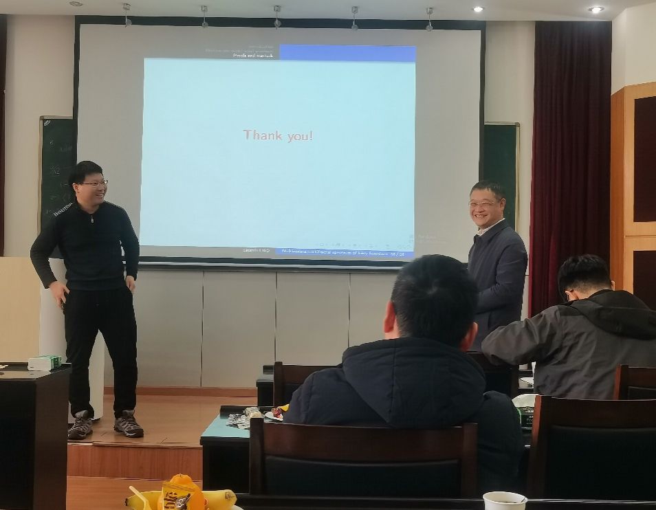 受学院邀请,华南理工大学李兵教授、武汉大学廖灵敏教授、复旦大学上海数学中心史汝西教授和湖南大学吴猛教授于12月28日上午9:00来院作学术报告。本次“分形几何与动力系统系列报告会”由院长丁义明教授主持,武汉大学、武汉理工大学、湖北大学、广东第二师范学院等高校的相关领域专家,以及本院相关方向教师与研究生参加了此次学术活动。