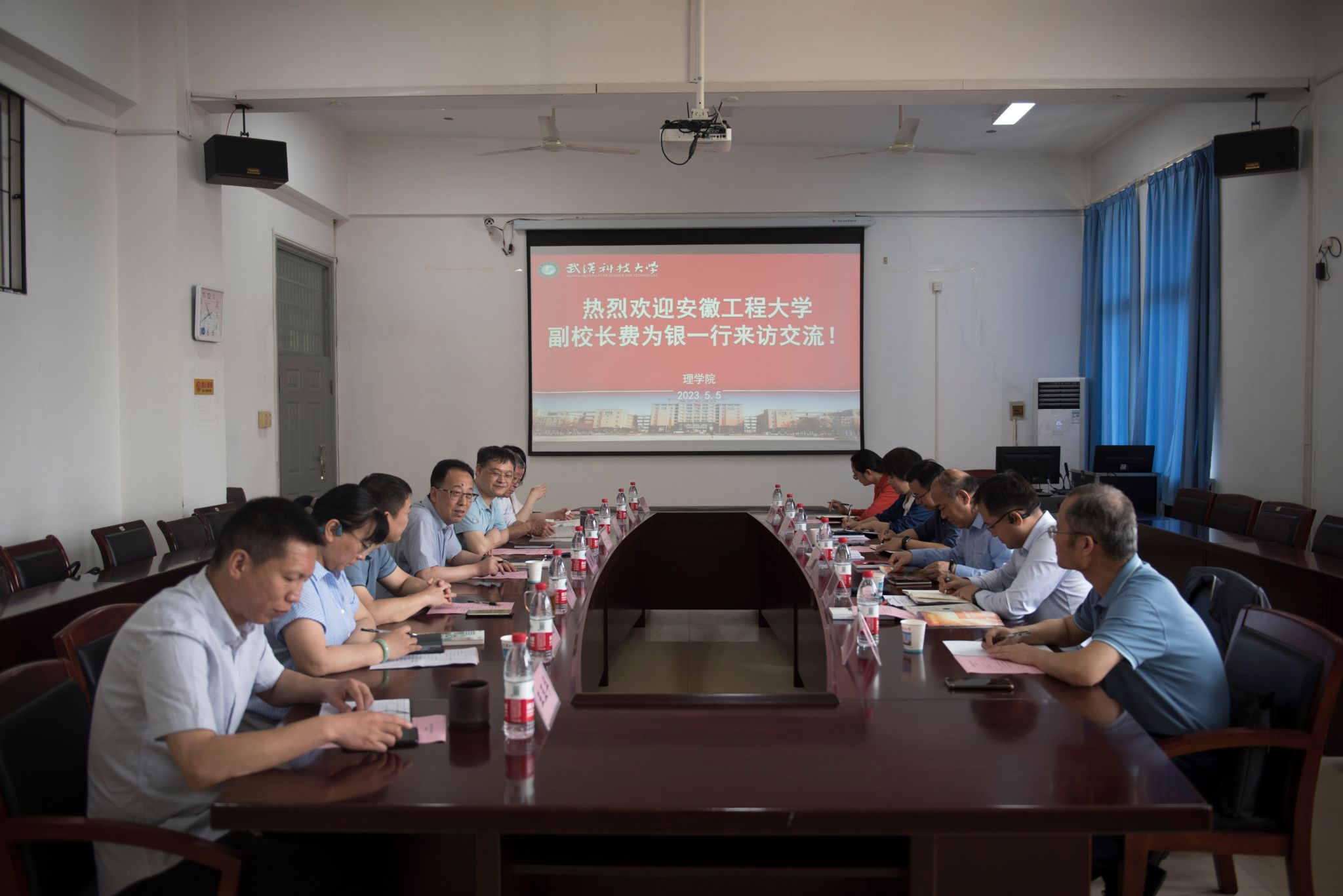 马腾代表学校对费为银一行的来访表示热烈欢迎。他简要介绍了学校的历史、近年来的发展情况,认为安徽工程大学与武汉科技大学在学科发展上的方向相近,合作空间大,希望未来在学科建设、人才培养等多领域开展合作。