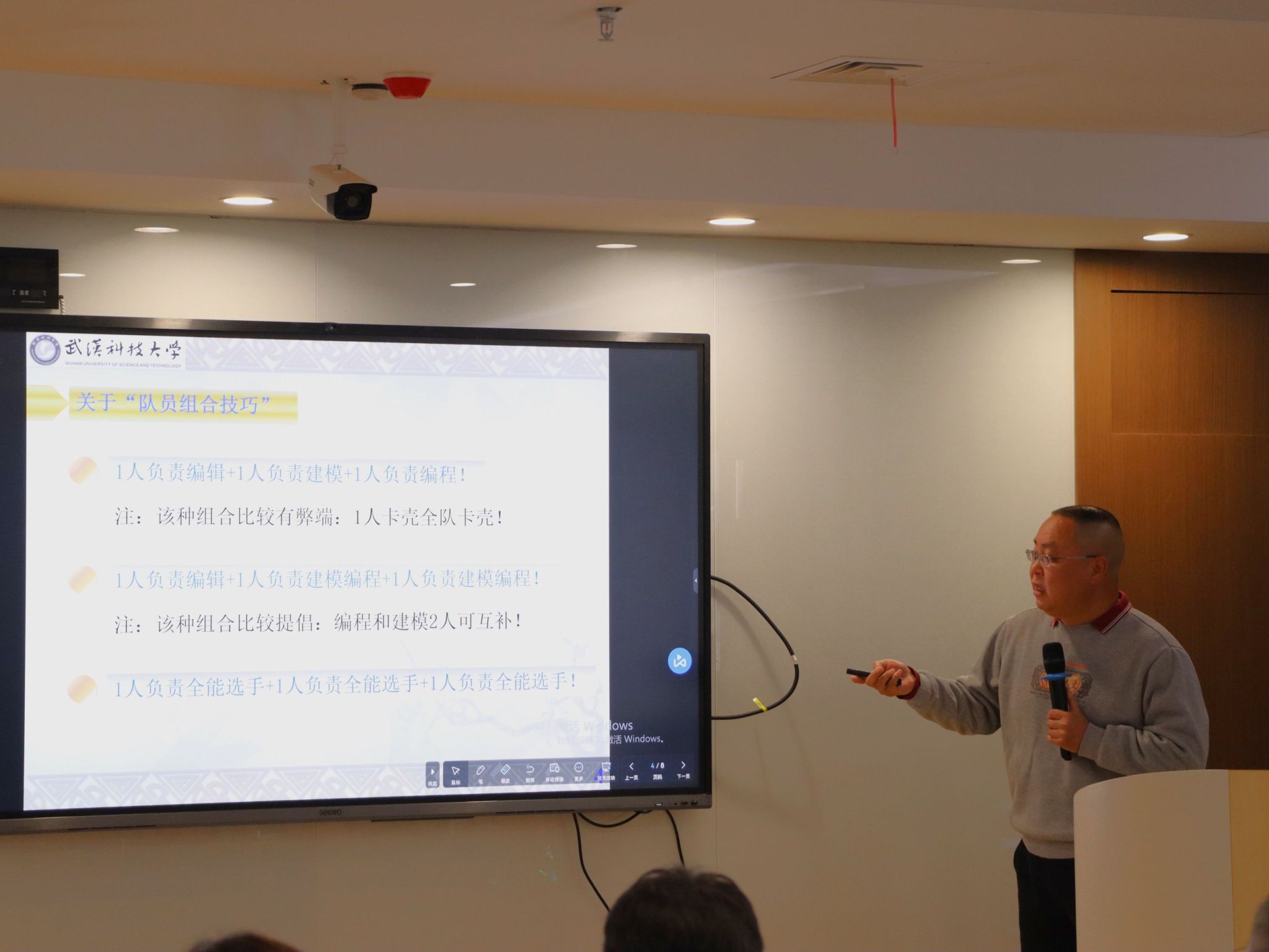 我校数学建模协会指导教师王文波介绍了数学建模竞赛的发展趋势,对近年来各大竞赛出题的侧重、评价的标准进行了讲解。