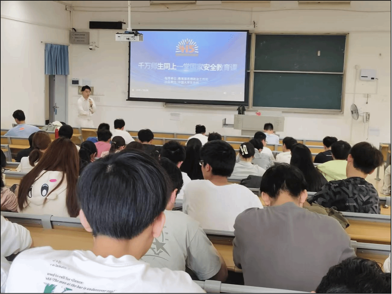 2025年4月15日,在全民国家安全教育走深走实十周年的重要节点,国家安全日当天,理学院辅导员毕浩洋与24级同学们一同参与了一场具有深刻意义的活动——观看 “千万师生同上一堂网络安全教育课”,共同筑牢国家安全防线。