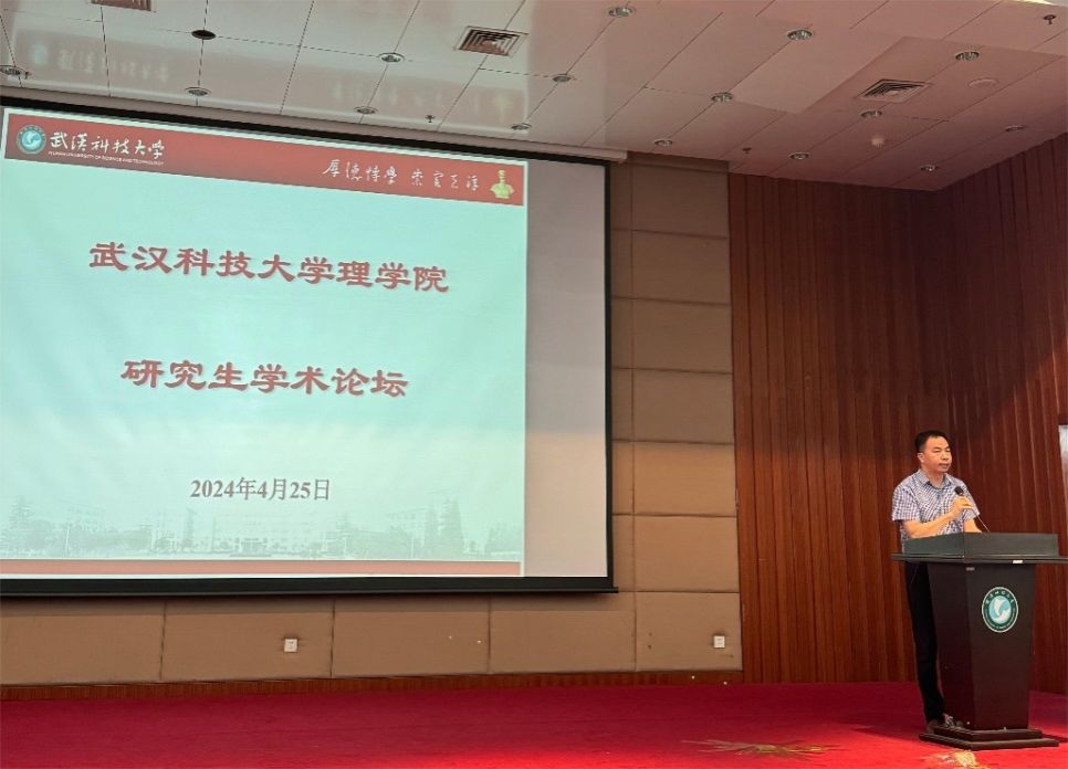 理学院院长丁义明教授致辞,他指出,研究生学术论坛是研究生培养的重要组成部分,在积极促进学术互动交流的同时,更是展示研究生创新精神和学术成果的窗口,是研究生开展学术交流、增强创新意识、激发创新思维、提升创新能力的重要途径和平台。希望本次学术论坛能为我院学子提供学术交流的机会,共同促进我院的学科发展。