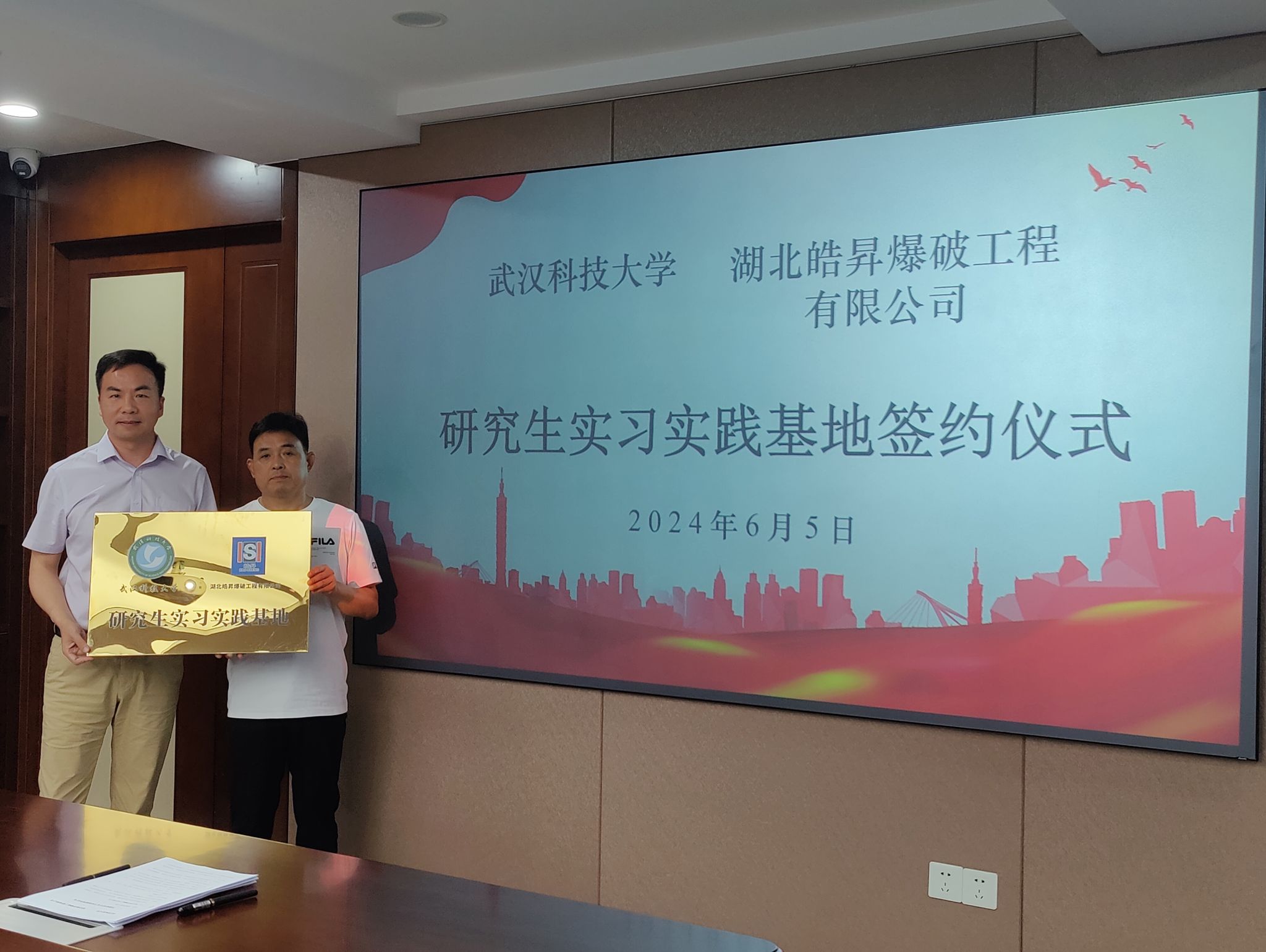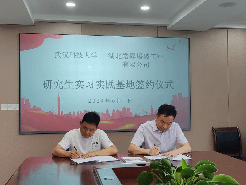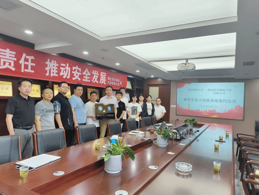 (通讯员 殷琳)6月5日,理学院副院长何理一行,赴湖北皓昇爆破工程有限公司开展校企共建研究生实习实践基地签约仪式。湖北皓昇爆破工程有限公司董事长康国明、总经理王虎、副总经理刘超、工程技术部部长张奎、业务部部长熊知国等出席签约仪式,部分理学院研究生代表参加签约仪式。张奎部长主持签约仪式。