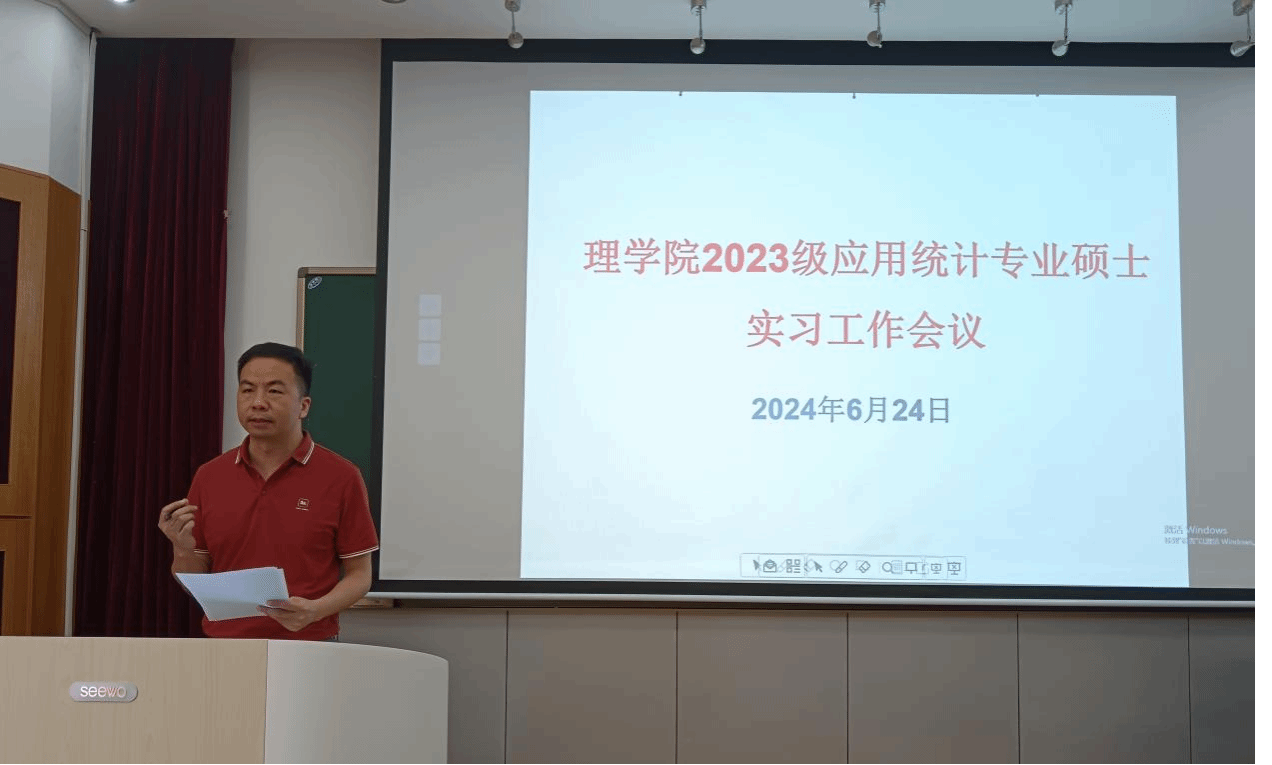 624日上午,理学院2023级应用统计专业硕士实习工作会议教二22515举行。理学院院长何理、数学与统计系领导班子、导师代表和全体2023应用统计专业硕士研究生参加了会议,本次会议由数学与统计系副主任何晓霞主持。