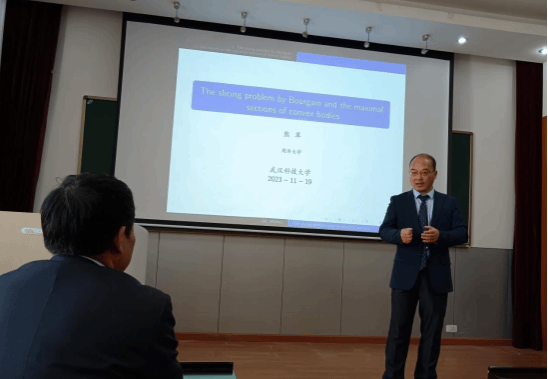 11月19日上午,应理学院邀请,同济大学熊革教授在我院22515学术报告厅为广大师生做了题为“The slicing problem by Bourgain and the maximal sections of convex bodies”的精彩学术报告。报告由我院李德宜教授主持,我院部分师生参加了报告会。