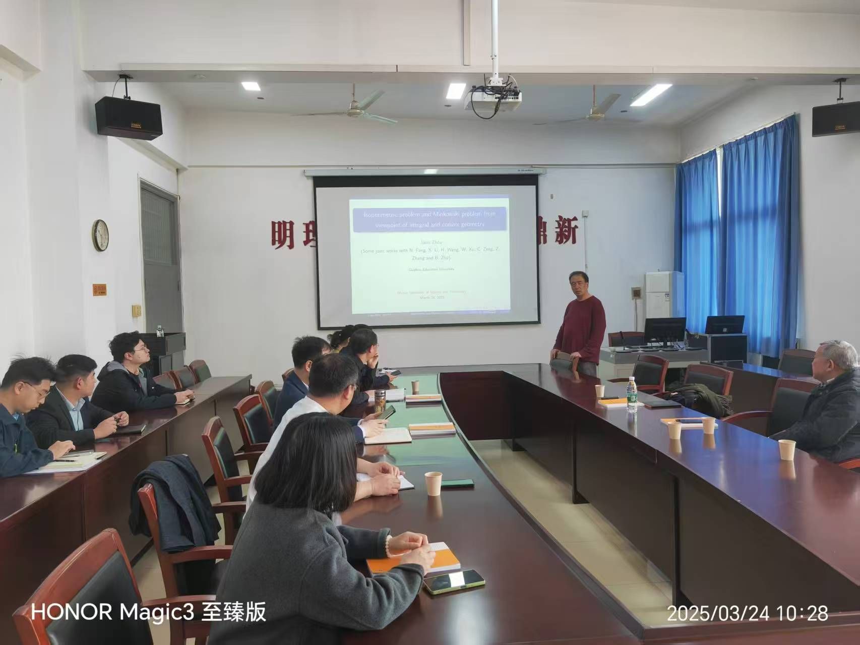 (付颖芳)3月24日,世界著名积分几何学家、我校知名校友、西南大学数学教授、博士导师周家足来我院22614进行学术交流,作了题为《Isoperimetric problem and Minkowski problem from viewpoint of integral and convex geometry》的学术报告,为与会师生带来了深入的学术分享。