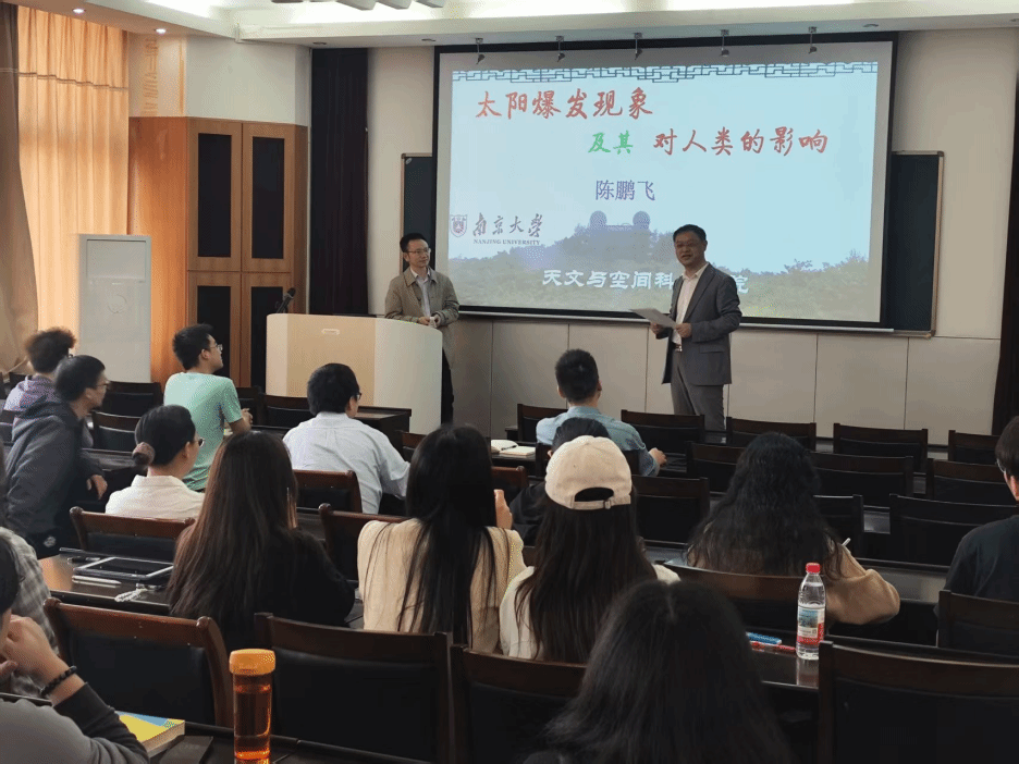 陈鹏飞教授以渊博的学识和生动的讲述,为在场师生呈现了一场精彩的天文学盛宴。这场持续两小时的学术报告不仅系统梳理了太阳物理研究的百年发展史,更以前瞻视角展现了我国在空间科学领域的重大突破。