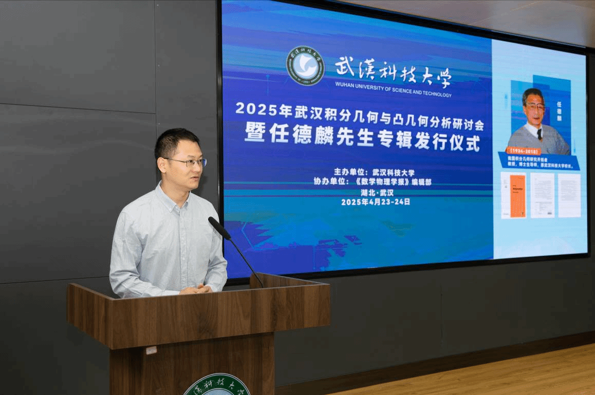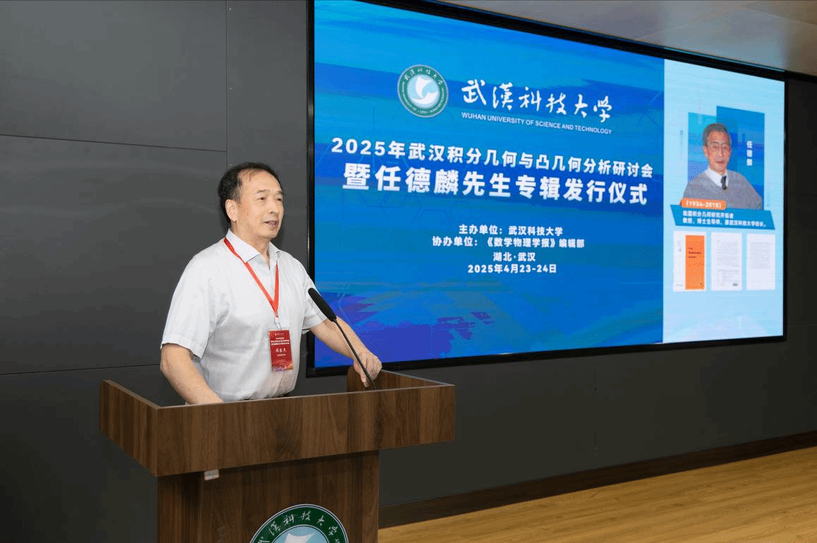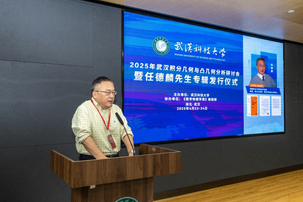 4月23日至24日,由武汉科技大学主办、《数学物理学报》编辑部协办的“2025年武汉积分几何与凸几何分析研讨会暨任德麟先生专辑发行仪式”在武汉科技大学隆重举行。中国科学院院士张伟平教授,复旦大学傅吉祥教授,陈省身数学研究所冯惠涛教授,南京理工大学张希教授,贵州师范学院周家足教授,武汉大学陈群教授,同济大学熊革教授等国内外数学界知名学者齐聚一堂,共襄学术盛宴。