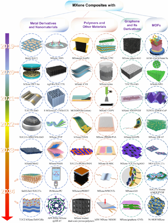 图2 用于制备压力传感器的MXene复合物2019-2024年的发展情况