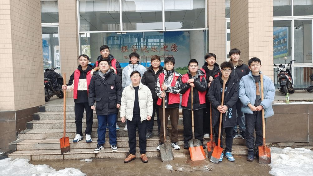 23日下午两点,参加铲冰除雪行动的师生党员以及在校学生在22606集合,由于参加除雪行动的同学们来的比较多,又缺少劳动工具,我院20级辅导员杨德明老师提前找到主楼保洁处借除雪工具,搜集到近十把羊角铲、铁锹、扫把等清扫工具。准备完毕后,在20级辅导员杨德明老师的带领下,众人来到理学院楼前进行清扫。