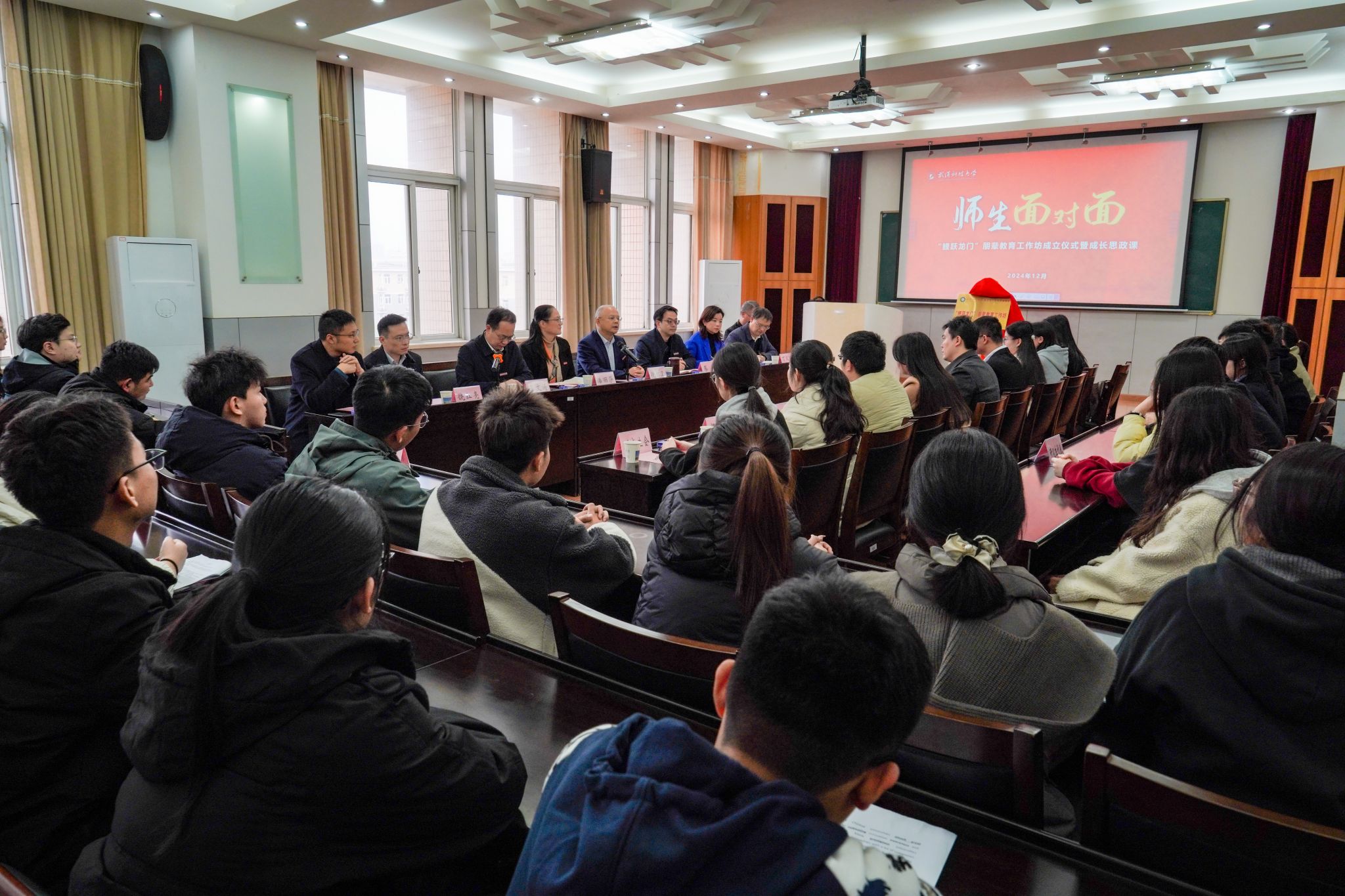 武科大网讯 12月5日,“师生面对面”系列活动之“鲤跃龙门”朋辈教育工作坊成立仪式暨成长思政课在理学院举行。校长倪红卫给理学院50余名学生讲授成长思政课,共话朋辈教育,探讨人生理想。